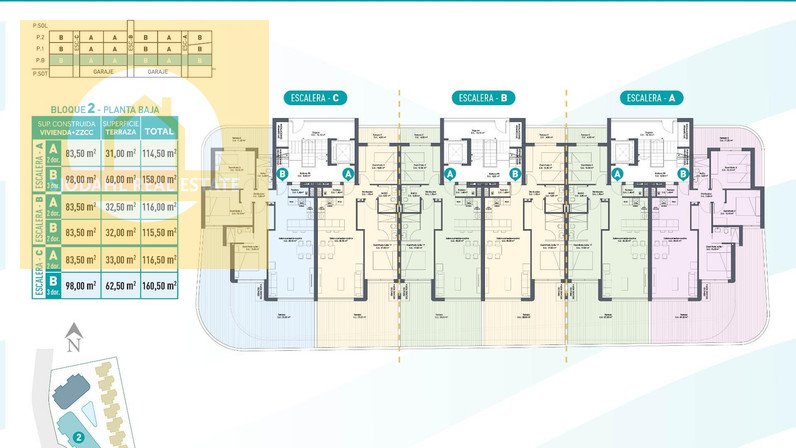 The apartment blocks offer homes with 2 or 3 bedrooms, available on ground and middle floors with large terraces or as penthouses with private solariums. Each apartment includes access to a communal Mediterranean-style garden and a large swimming pool, perfect for relaxation and socializing under the sun. Parking spaces in an underground garage and elevators in each block add to the convenience.