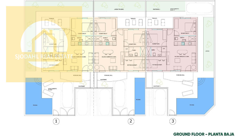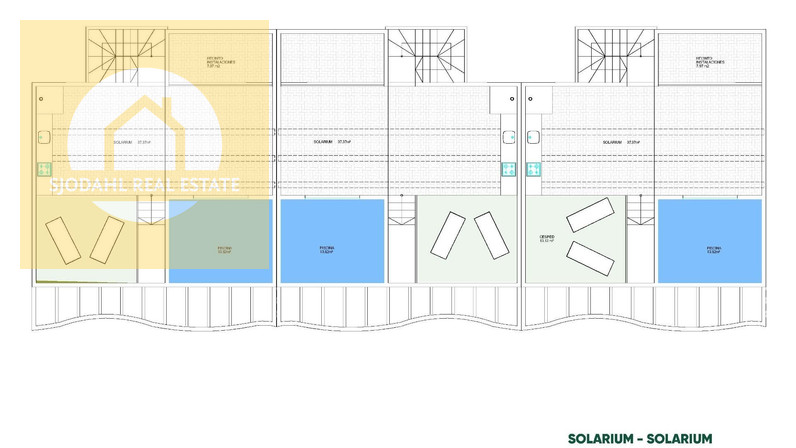 Ground floor bungalows include a private garden, private swimming pool and on plot parking, ideal for those seeking space and easy access. Top floor properties offer a private terrace and a rooftop solarium with private pool, as well as a designated parking space at ground level.