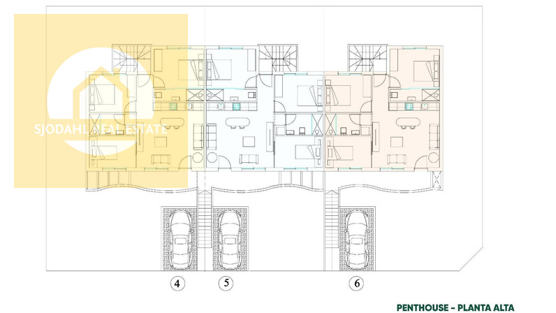 Ground floor bungalows include a private garden, private swimming pool and on plot parking, ideal for those seeking space and easy access. Top floor properties offer a private terrace and a rooftop solarium with private pool, as well as a designated parking space at ground level.
